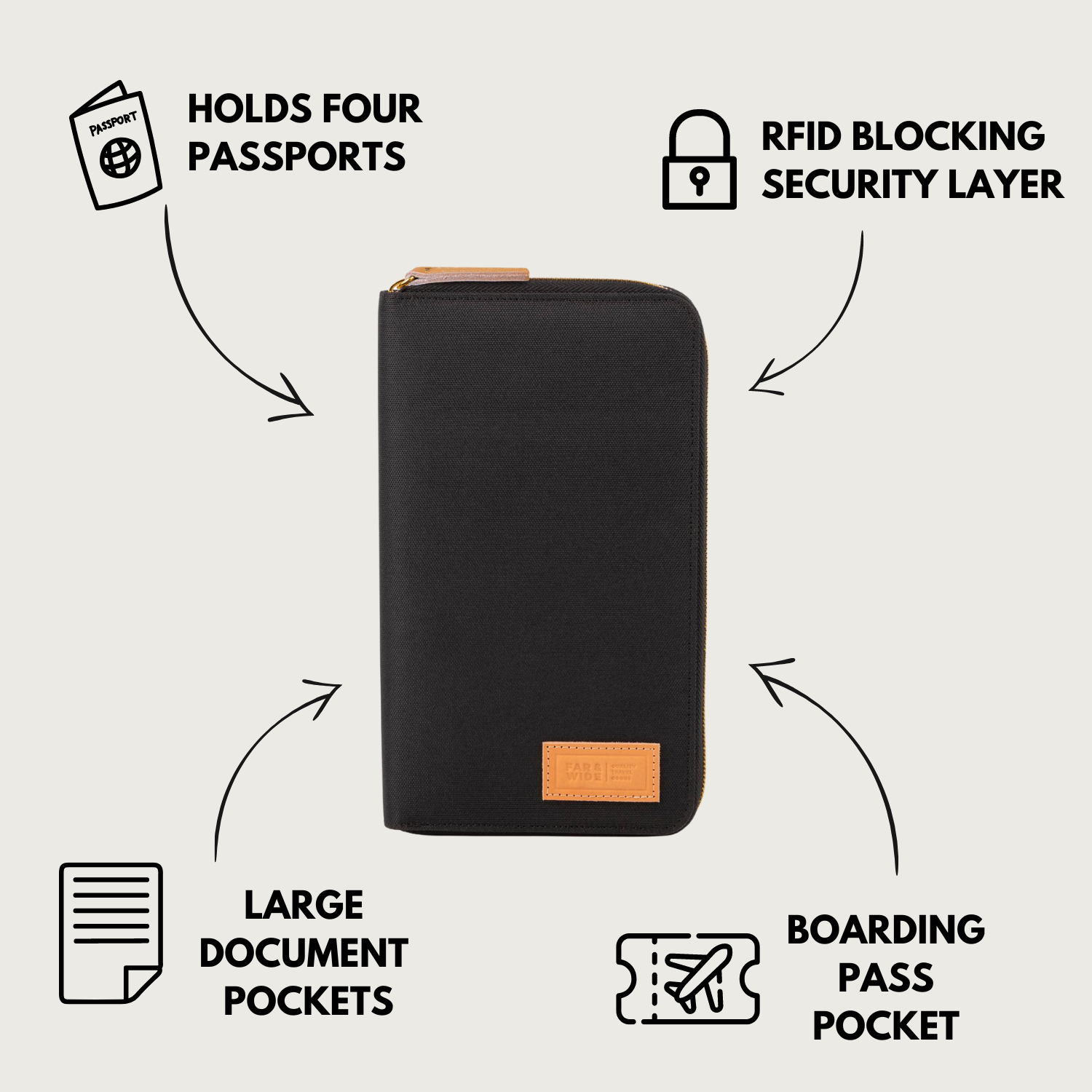 "This family passport holder securely holds four passports and all of our other travel documents"